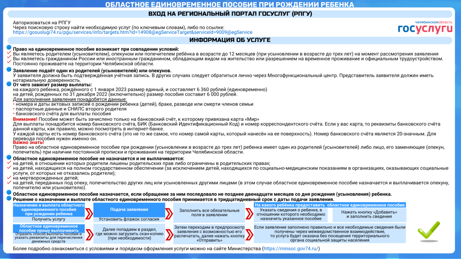 Памятки по оформлению областного единовременного пособия при рождннии ребенка на портале Госуслуг