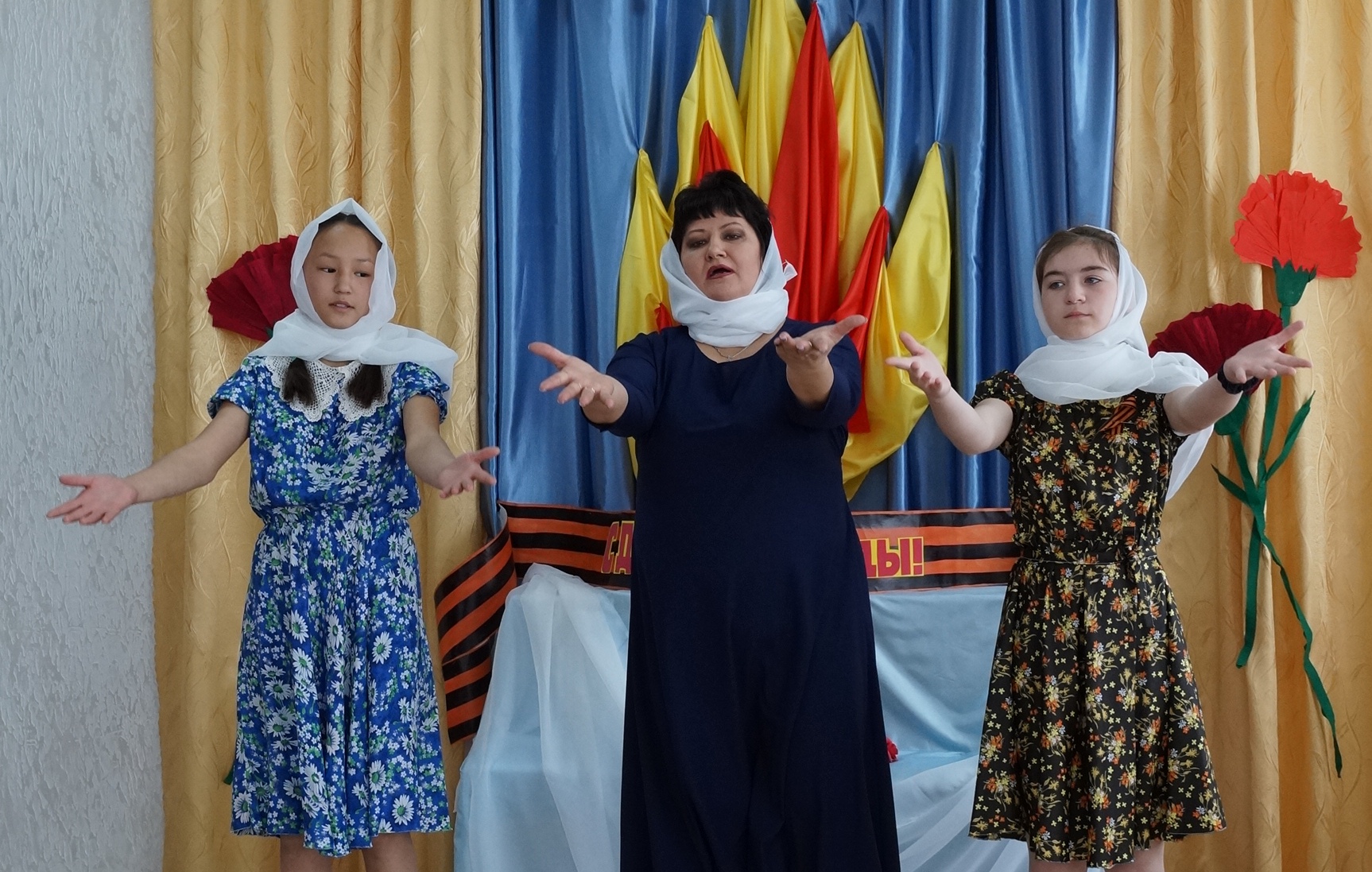 Девочки под руководством педагога Ерастовой И.Н. исполнили танцевальную зарисовку «Ах мой сынок», звучали песни «Письма войны», «Светлый день победы».