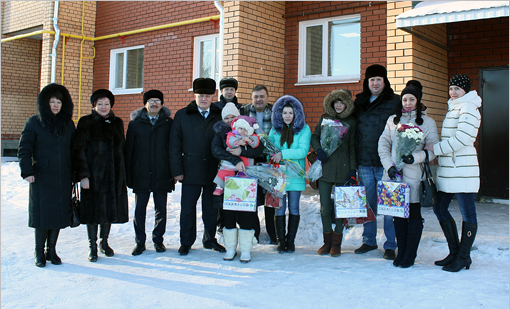Четверо счастливых новоселов — лица из числа детей сирот (молодые женщины), с детьми.