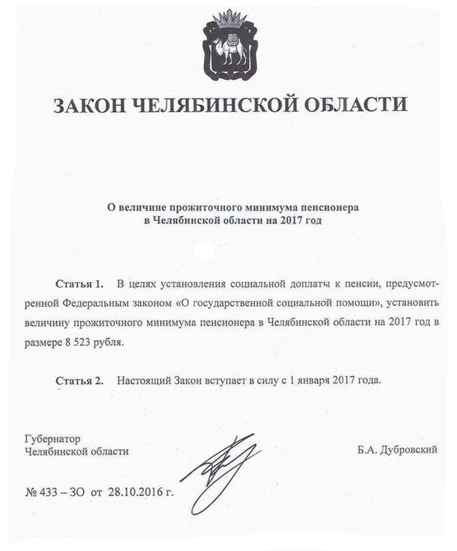 О величине прожиточного минимума пенсионера в Челябинской области в 2017 году.